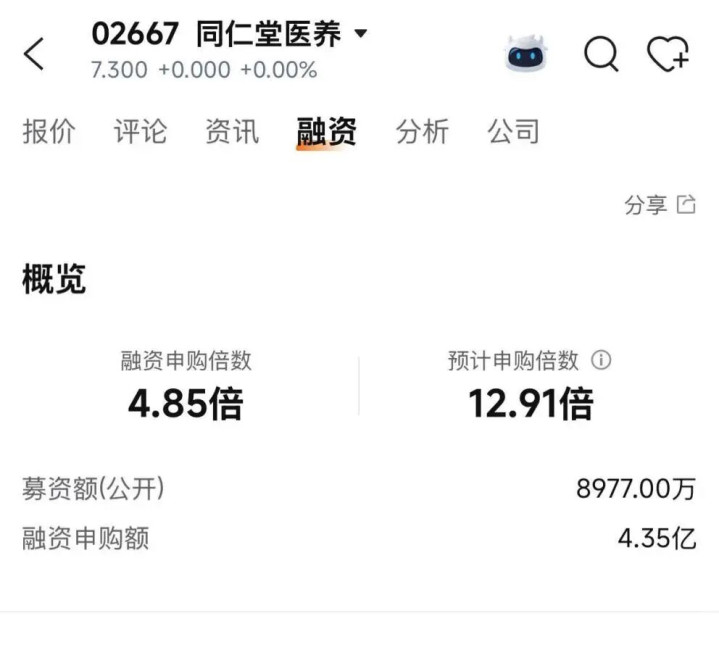 而从申购数据来看也如实如斯,本次新股申购中,同仁堂医养的申购数据并不太理思。富途牛牛的申购数据露出,其融资申购倍数仅有4.85倍,这一倍数标明其在散户认购中并不积极。(注:富途牛牛有计划融资倍数与最终数据有一定各异)