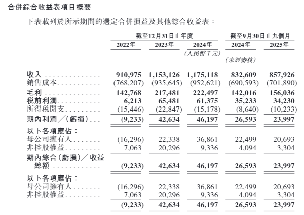 招股书露出,在2022年、2023年、2024年以及2025年前9个月,同仁堂医养收入辞别为9.11亿元、11.53亿元、11.75亿元和8.58亿元,利润辞别约为-923万元、4263万元、4620万元和2400万元。