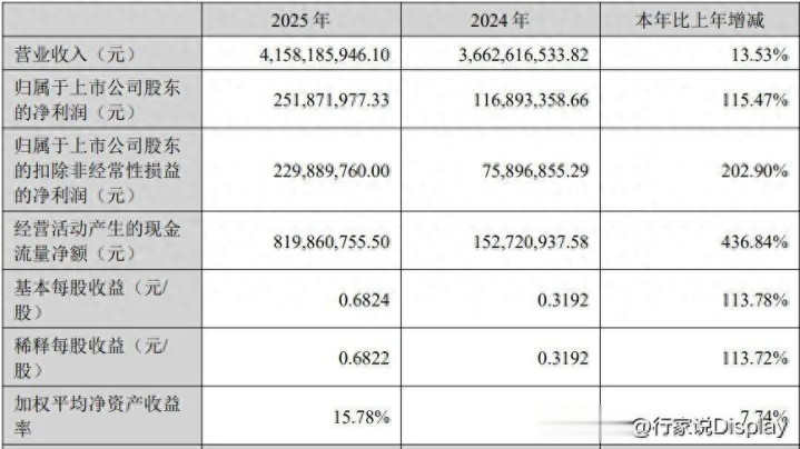 全年已毕营收41.58亿元,同比增长13.53%,增速在复杂商场环境中保握肃肃;更为亮眼的是其盈利才调的质变,包摄上市公司股东净利润2.52亿元,同比增长115.47%,已毕翻倍式跃升。