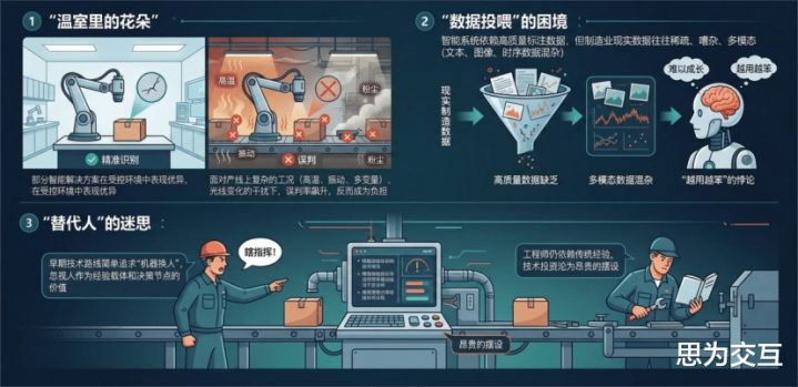3. “替代东谈主”的迷想:早期技艺道路肤浅追求“机器换东谈主”,冷漠东谈主动作教诲载体和决策节点的价值。收尾,系统与现场东谈主员“两张皮”——操作工怀恨智能体“瞎指令”,工程师仍依赖传统教诲,技艺投资沦为立志的成列。