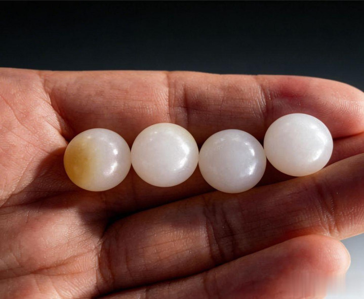 珠子必须“素面朝天”。它莫得任何斑纹不错覆盖污点,反而因为纯圆的外形,污点在色泽下无穷放大,一说念隐微的水线、一个针尖大的雀斑、一抹不均匀的杂色,在圆弧形的名义上明理会白,根底不需要懂玉也能一眼看到。