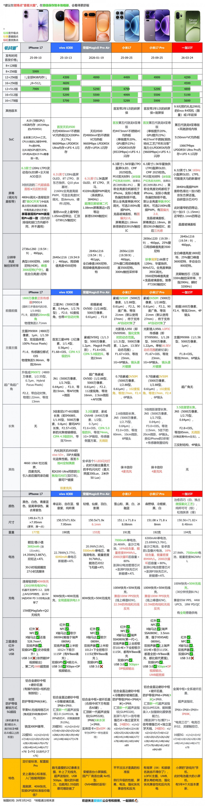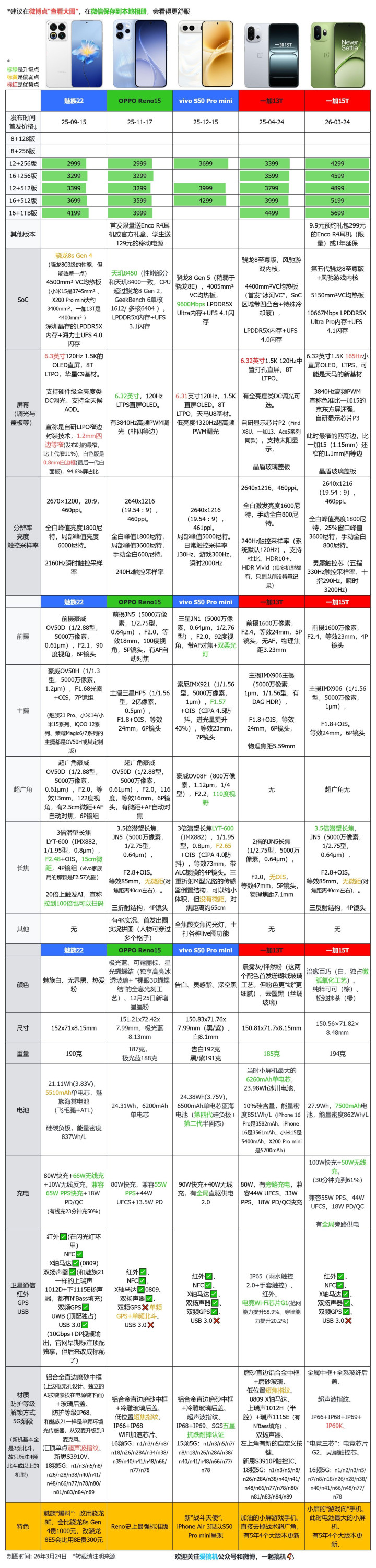 终末例牌,【一加15T】与小米17/17 Pro、iPhone 17、vivo X300/S50 Pro mini、荣耀Magic8 Pro Air、Reno15、魅族22、一加15/13T、Ace 6/6T对比↓。