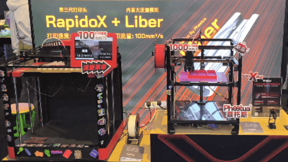 展会现场,菲托斯搭建专属测试平台,直不雅展示了Rapido X的惊东说念主性能:搭载Liber模组后,打印速率最高可达到1000mm/s,即便使用0.4mm喷嘴,高速开动景况下仍能保证出色的打印名义质地。