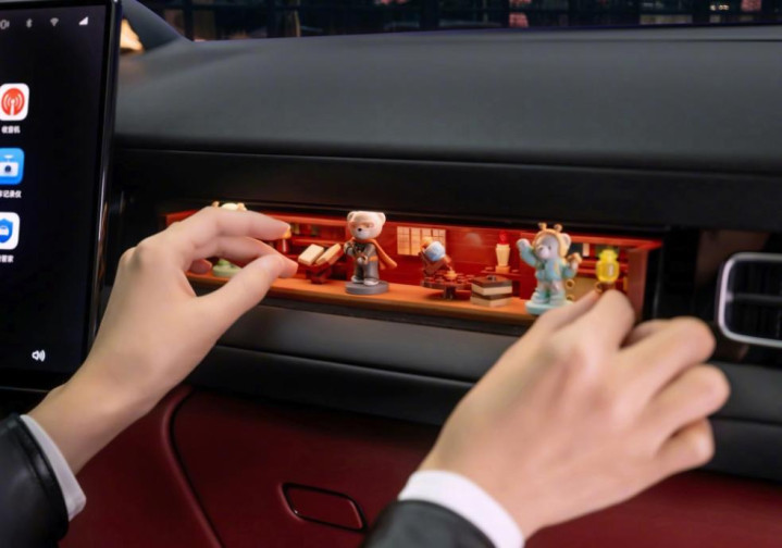 副驾前的灵感橱窗是由磁吸底板和钢化玻璃构成,不错我方给与摆放一些手办或者摆件。诚然也能换成电子墨水屏,露馅自界说画面,何况灵感橱窗里面有12V/60W供电接口,维持连结Pad支架、充电模块等拓展配件。