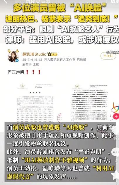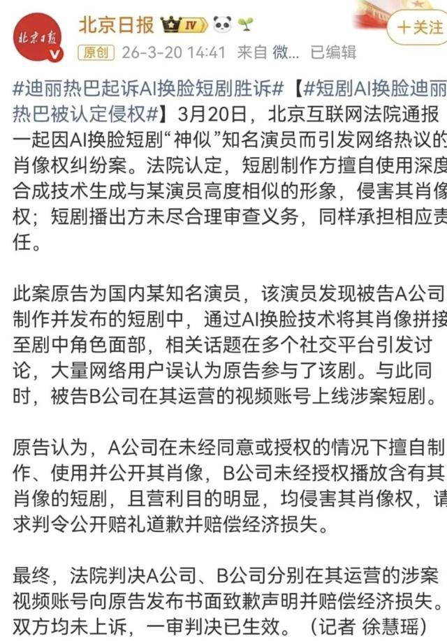 杨紫硬刚AI的同期,迪丽热巴被换脸盗用肖像权一事也落地了。