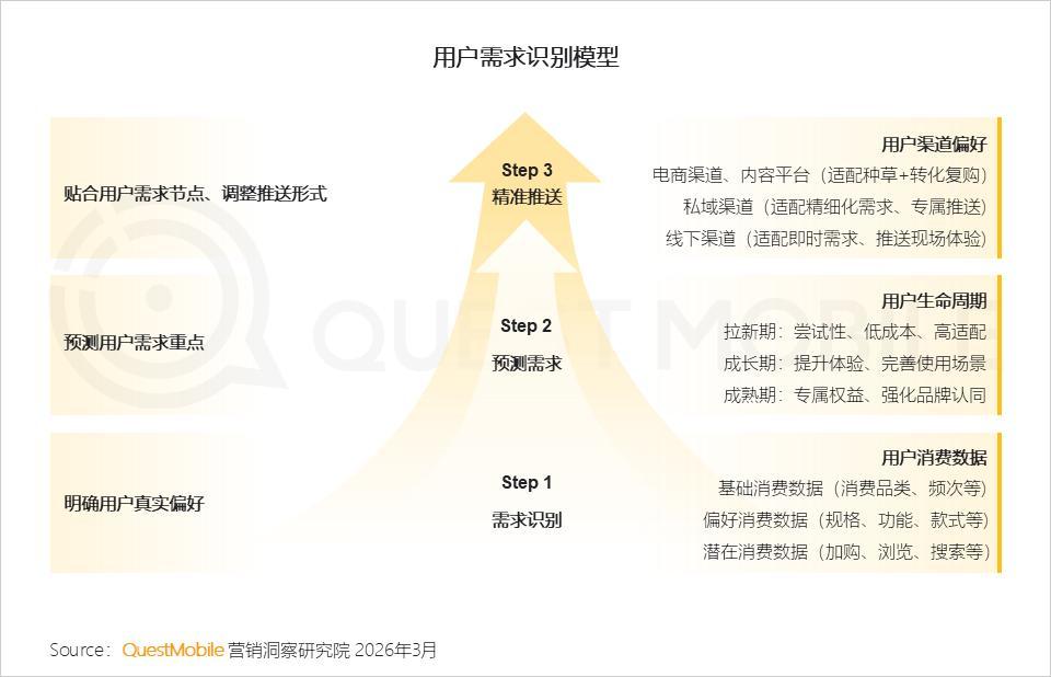 1.3 起先2:识别需求>种草和用户影响,即基于践诺破费记载并结合用户人命周期预测需求,并聘用时机推送,效能更大