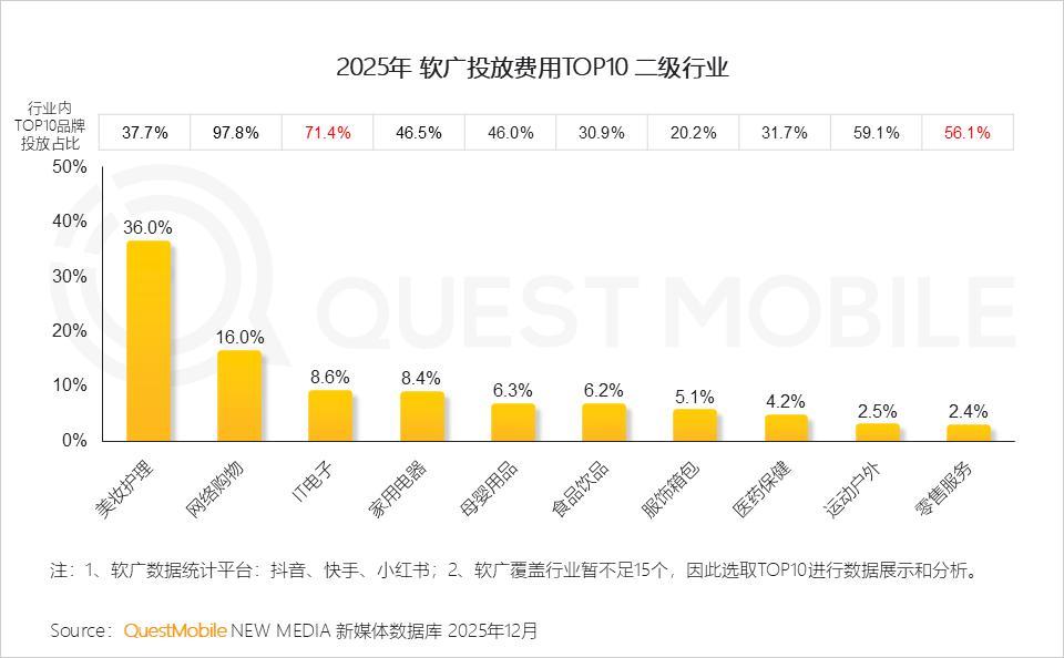 与硬广的资金运行不同,软广更依赖场景与信任。零卖业绩借说念土产货生计买通最短交往链路,奏效在软广商场踏进前线;而IT电子则凭借头部品牌的极强势能,在软广端酿成了远超硬广的信任寡头效应。