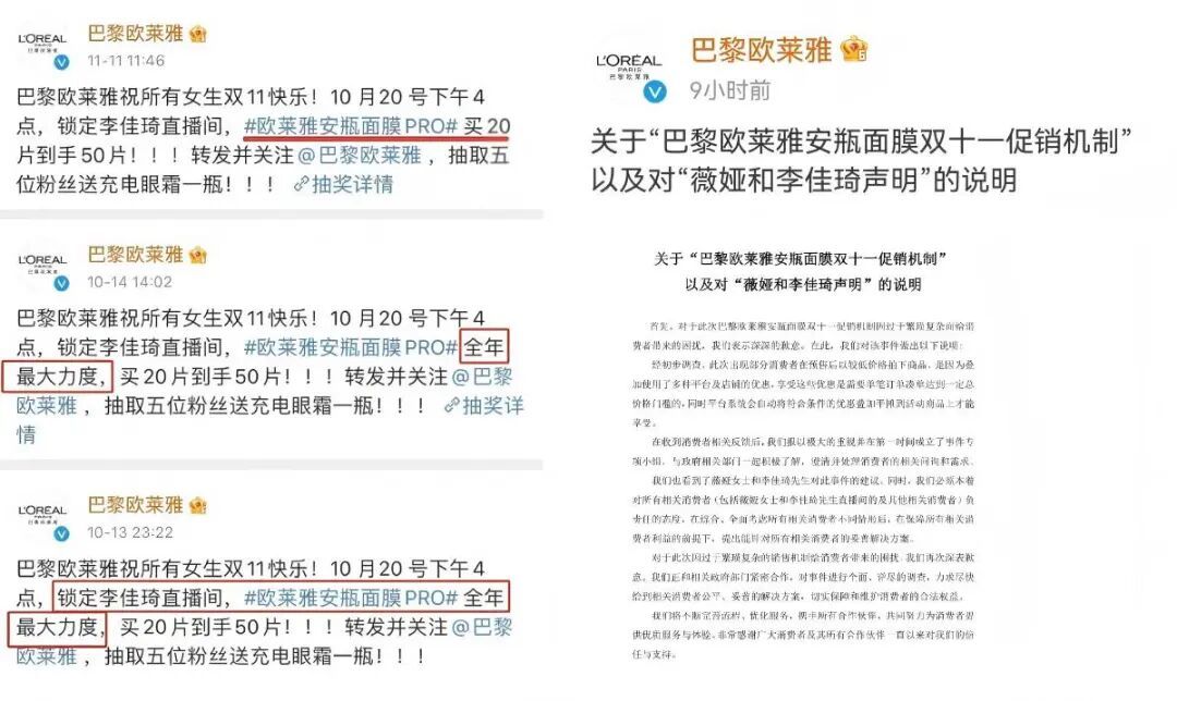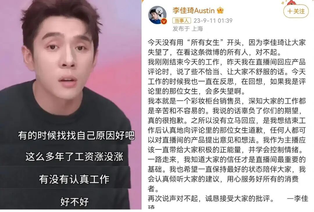 李佳琦直播截图和说念歉微博 开头:鸠合