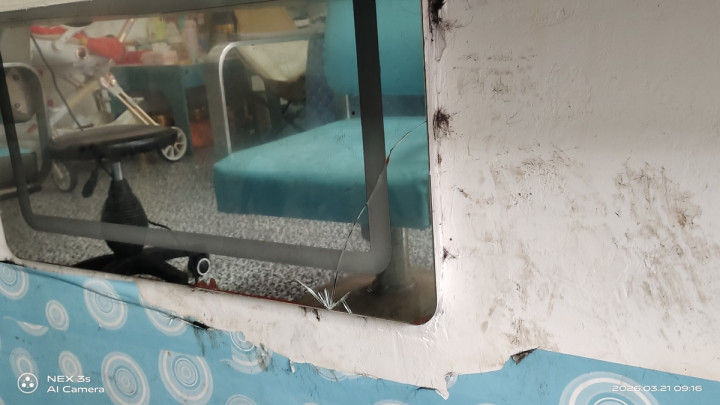 剪发店内的玻璃镜子艰涩