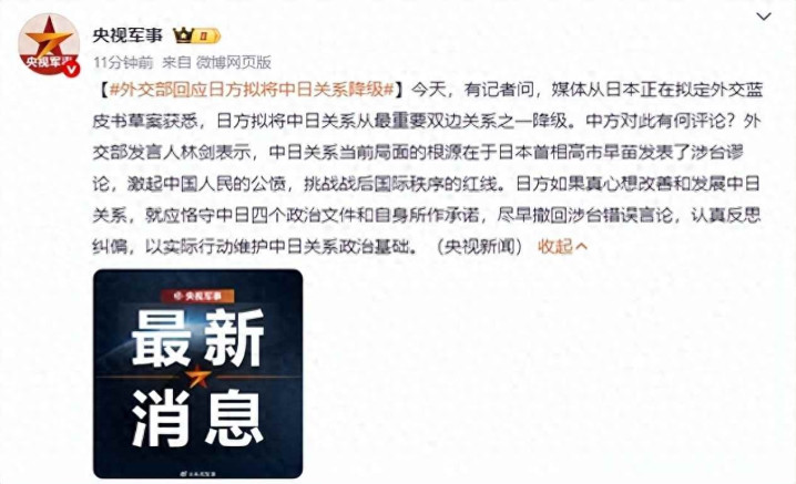三月二十四日,中国际交部发言东谈主林剑在记者会上回复了日本方面的动向,日本政府正在草拟新版《社交蓝皮书》,草案斟酌将中日关系从“最紧要双边域系之一”下调等第,中方对此暗意,这不是中国方面不讲东谈主情,而是日本先踩了红线。
