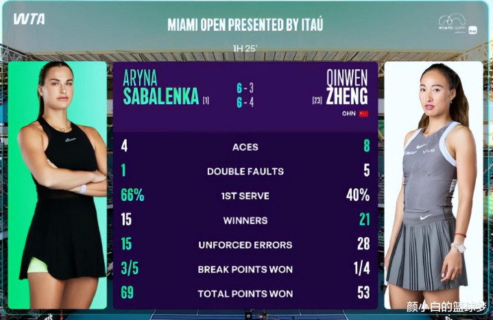 把柄赛后的数据统计,郑钦文21个制胜分早先萨巴伦卡,但非受迫性诞妄28-15比萨巴伦卡多13个,大发郑钦文的一发得分率跨越了80%,但一发告捷率仅34%。只可说郑钦文的踏实性还不及。