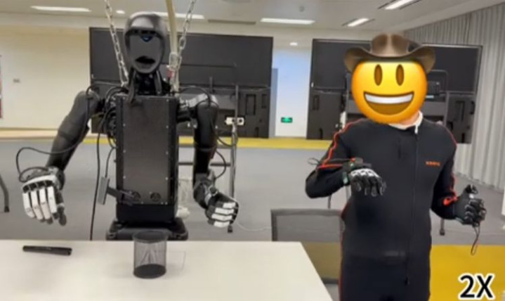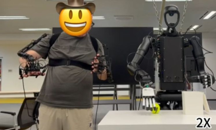 基于外骨骼的遥操作:使用绽开学对皆的外骨骼机械服进行要津测绘,搭配霍尔效应传感器手套,每只手提供15个目田度。