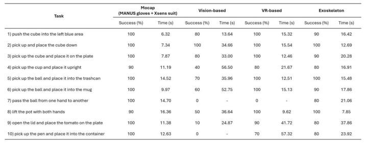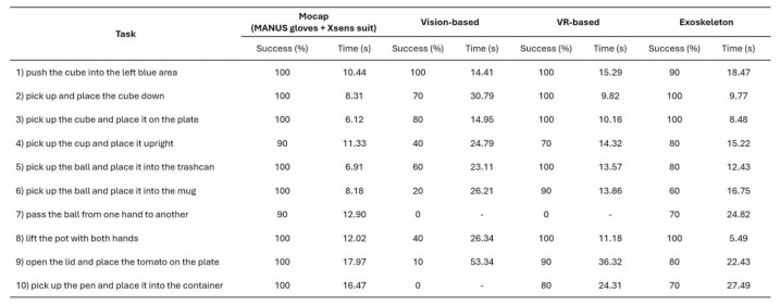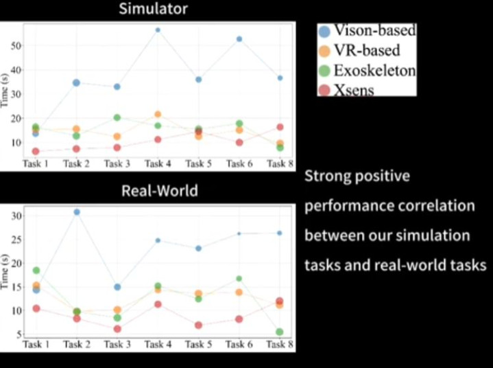 表1:不同遥操作系统在模拟任务中的性能相比